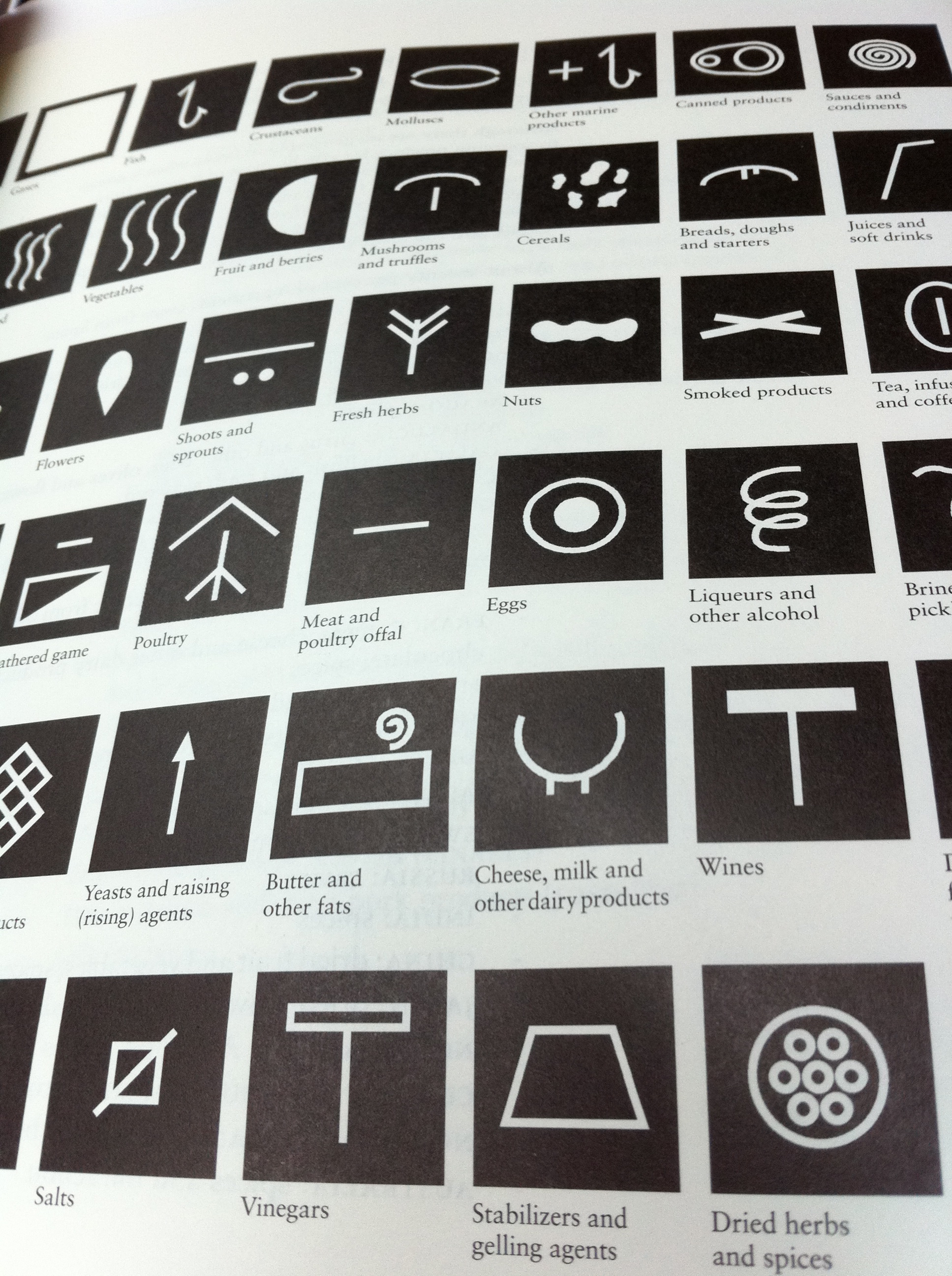 This page immediately reminded me of something I saw in A Day at elBulli: a set of symbols used to classify different product families of ingredients.