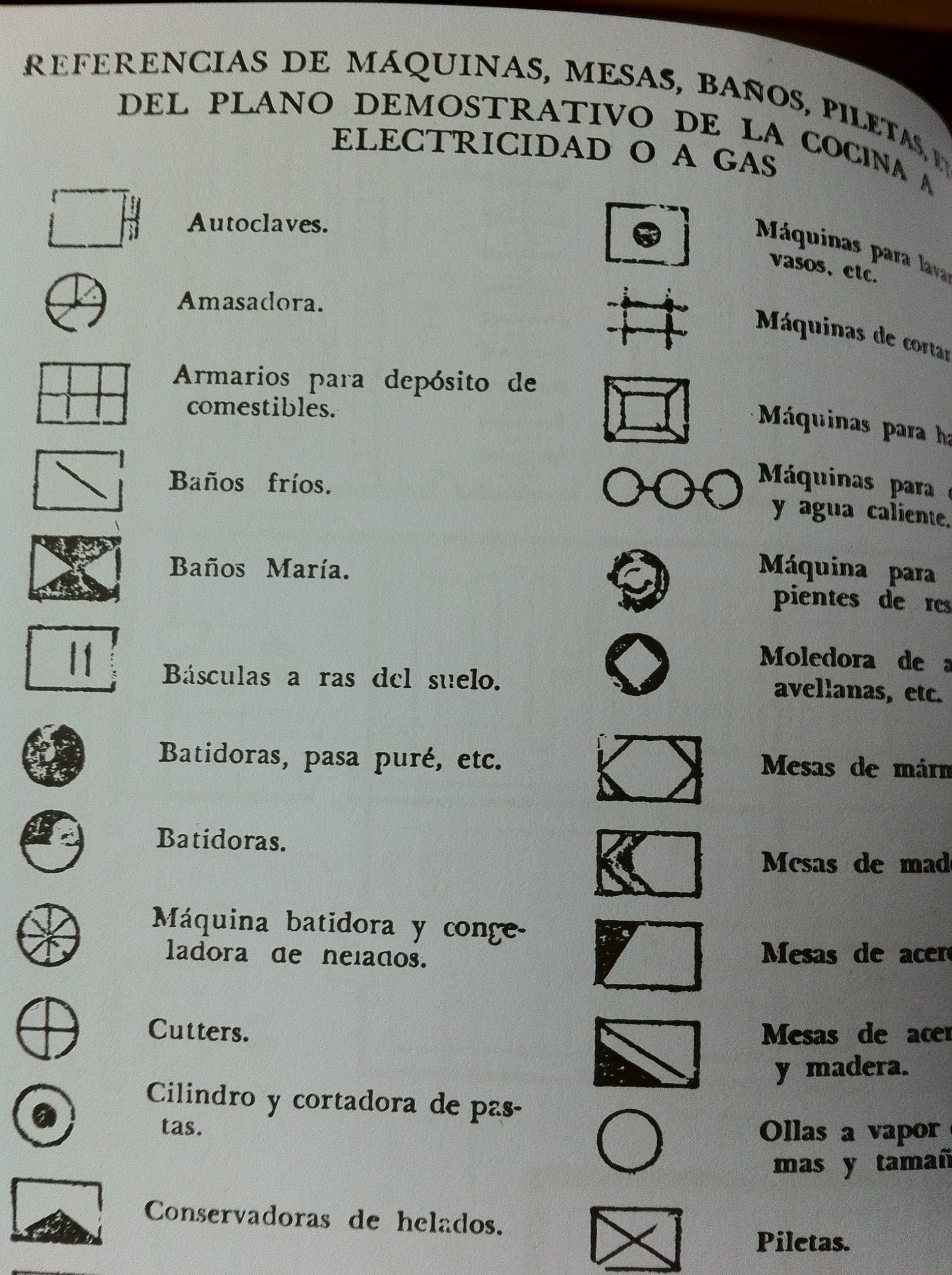 One thing I noticed right away was at the beginning of the book. A page full of symbols, representing what I gathered were elements of a professional kitchen.