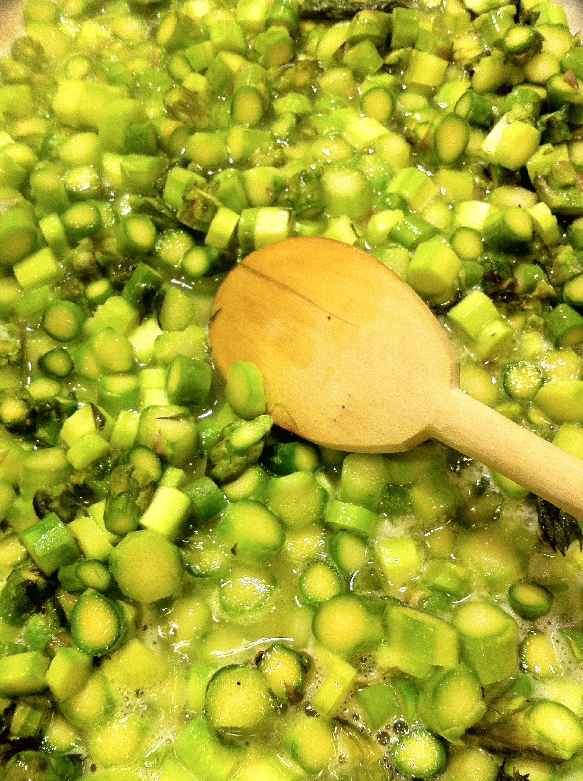 As what seems to be a pattern for me, I learned something valuable about cooking this week by messing it up. This time it was over phrasing. In particular, the instruction “thinly sliced”. For me, thinly slicing asparagus implies lengthwise. Otherwise, it would have said “thinly chop”, right? I don’t think so. In the first round, the thin stringy fibers of the inside of the asparagus refused to be finely blended, leaving choppy floss and an uneven texture. So I went back to the store, bought some more, and sliced them appropriately.