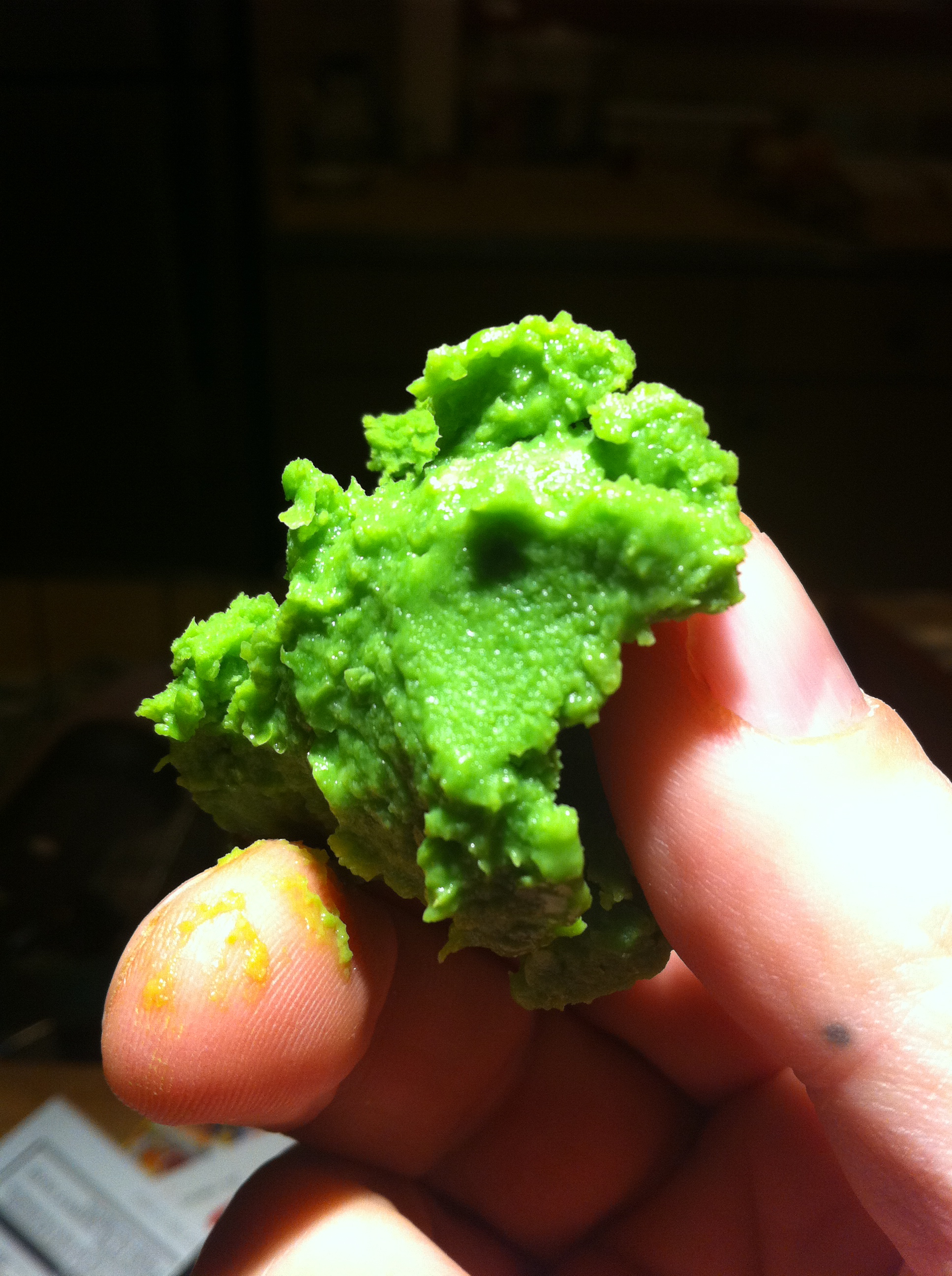 As the first reviews began coming out from the 30 course dinners held by the Modernist Cuisine team, everyone mentioned the pea butter in particular. A pretty simple recipe, you take pureed peas and spin them in a centrifuge to extract the pea fat. I gave it a shot at my house, taking a can of peas, blending them, and spinning them for 30 minutes. Nothing good came of it and the layers did not seem to separate. I was stumped.