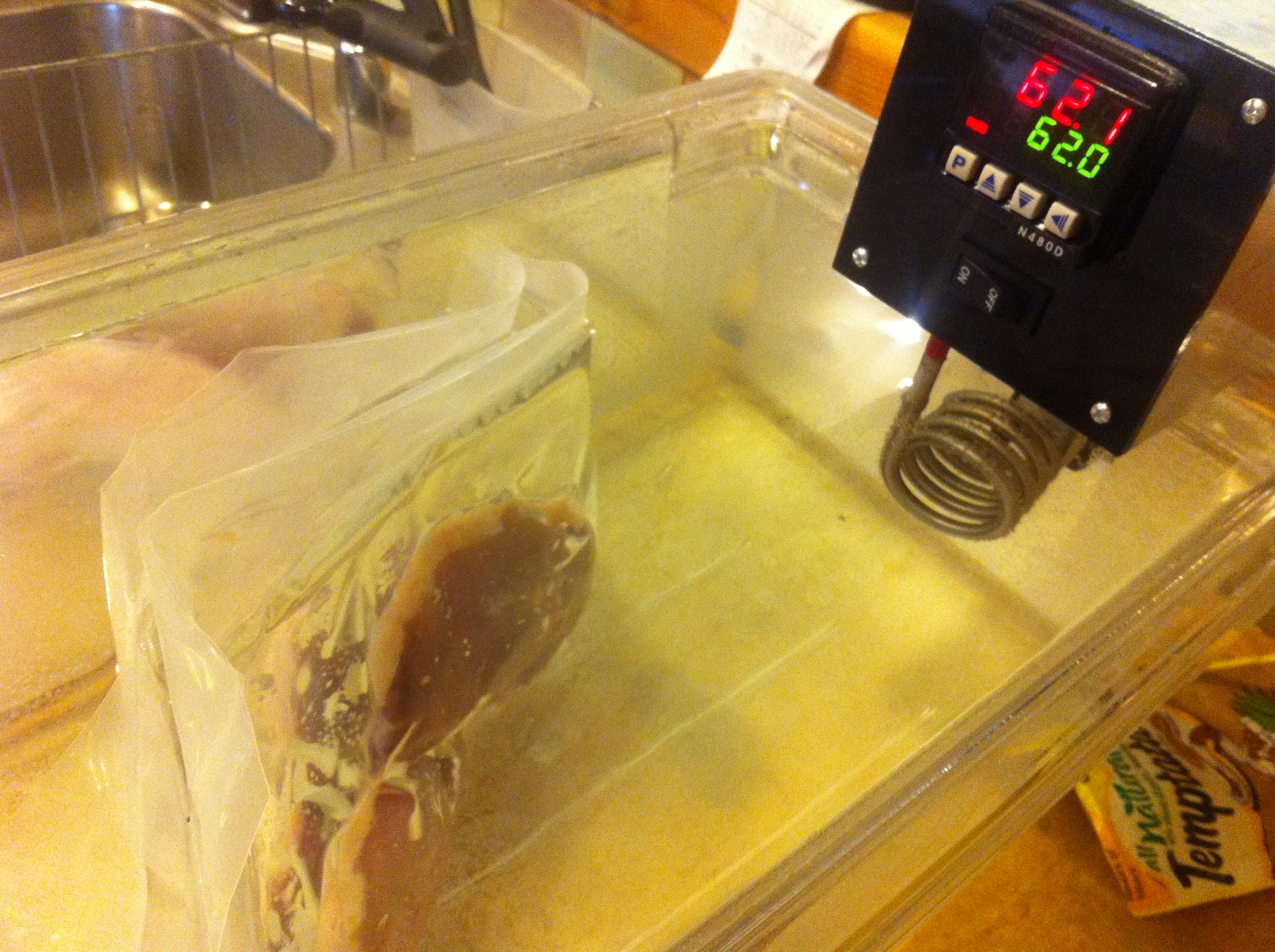 After 4 hours, they were rinsed, sealed again and dropped in the sous vide bath for 25 minutes.  They were ready to go and I moved forward.