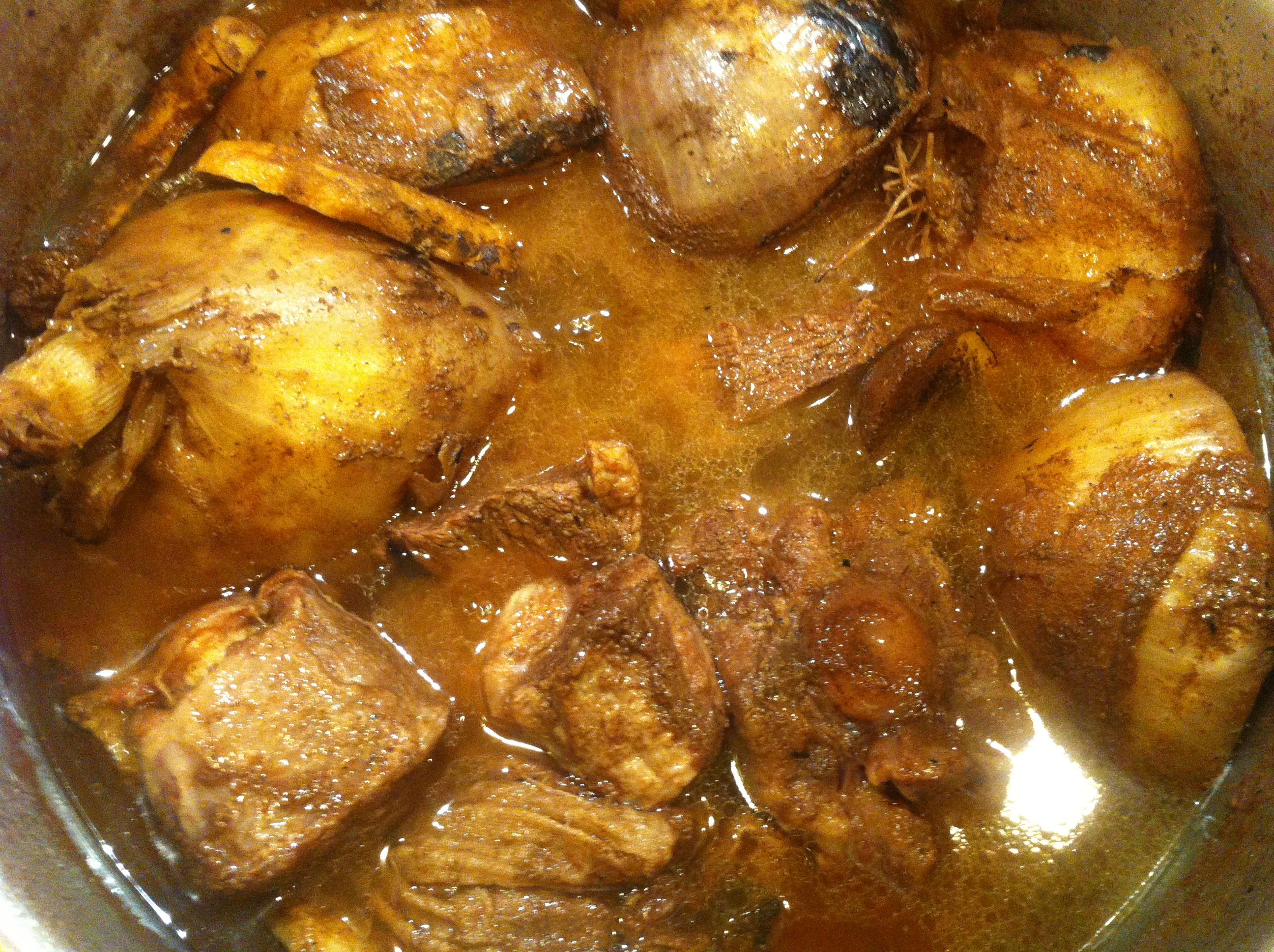 Next was to blanch the beef knunckles (to get rid of any potential bacteria sitting on the surface of the meat) and to sear the oxtail to get more flavor compounds from the Maillard reaction of amino acids and sugar browning the surface.