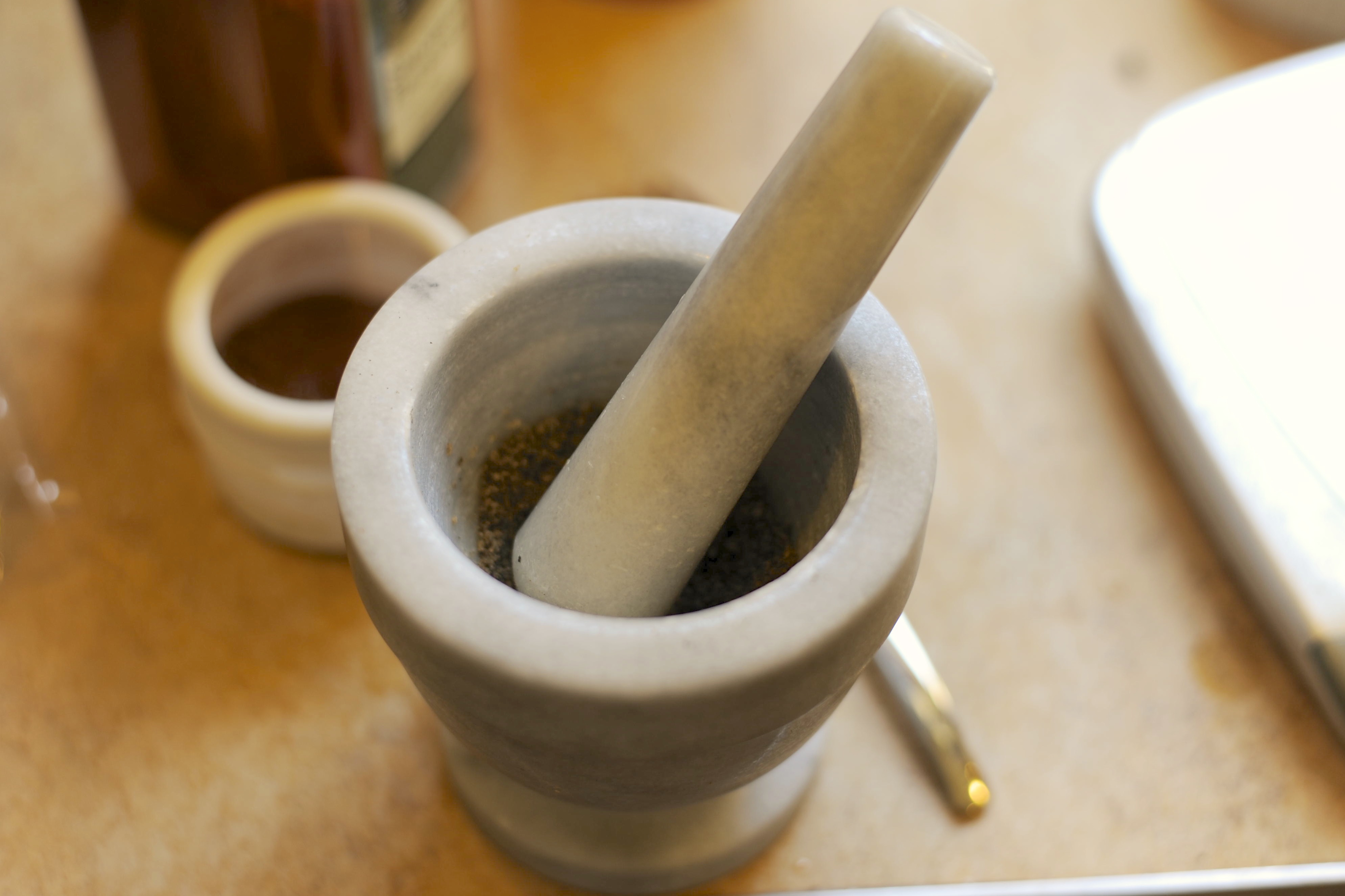 My pepper grinder broke, so I had to abandon all modernist convenience and go totally old school to get it prepared.