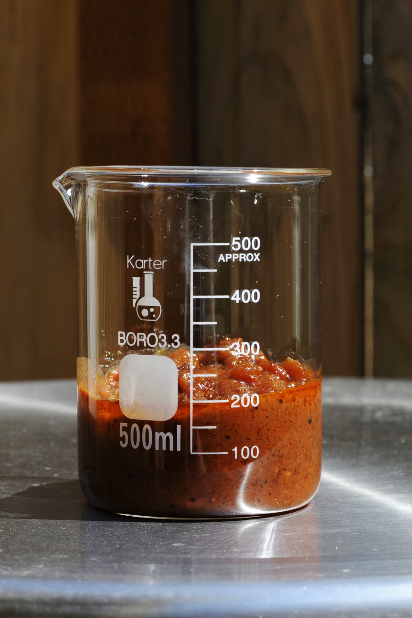 This had no tomato at all, but had both cider and white wine vinegars, in addition to chili flakes. Sharp and very spicy.