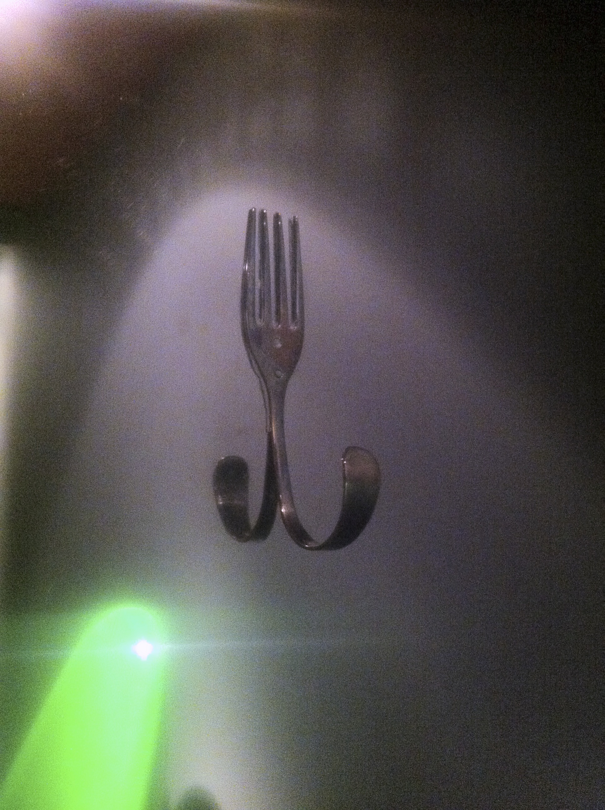Being avant-garde, they extended that into other parts of their restaurant as well. To keep the silverware off of the tablecloth, they used little metal bars.