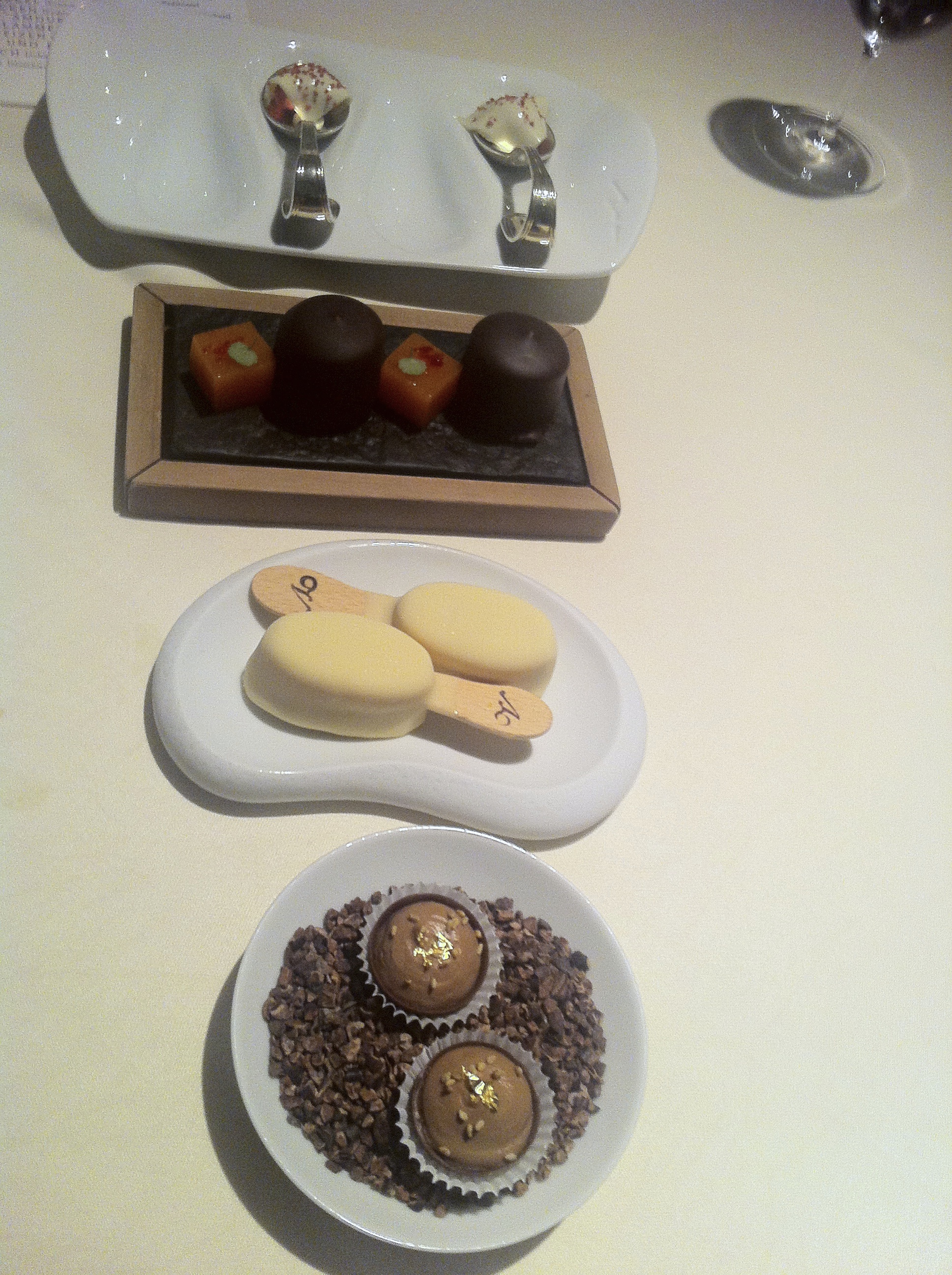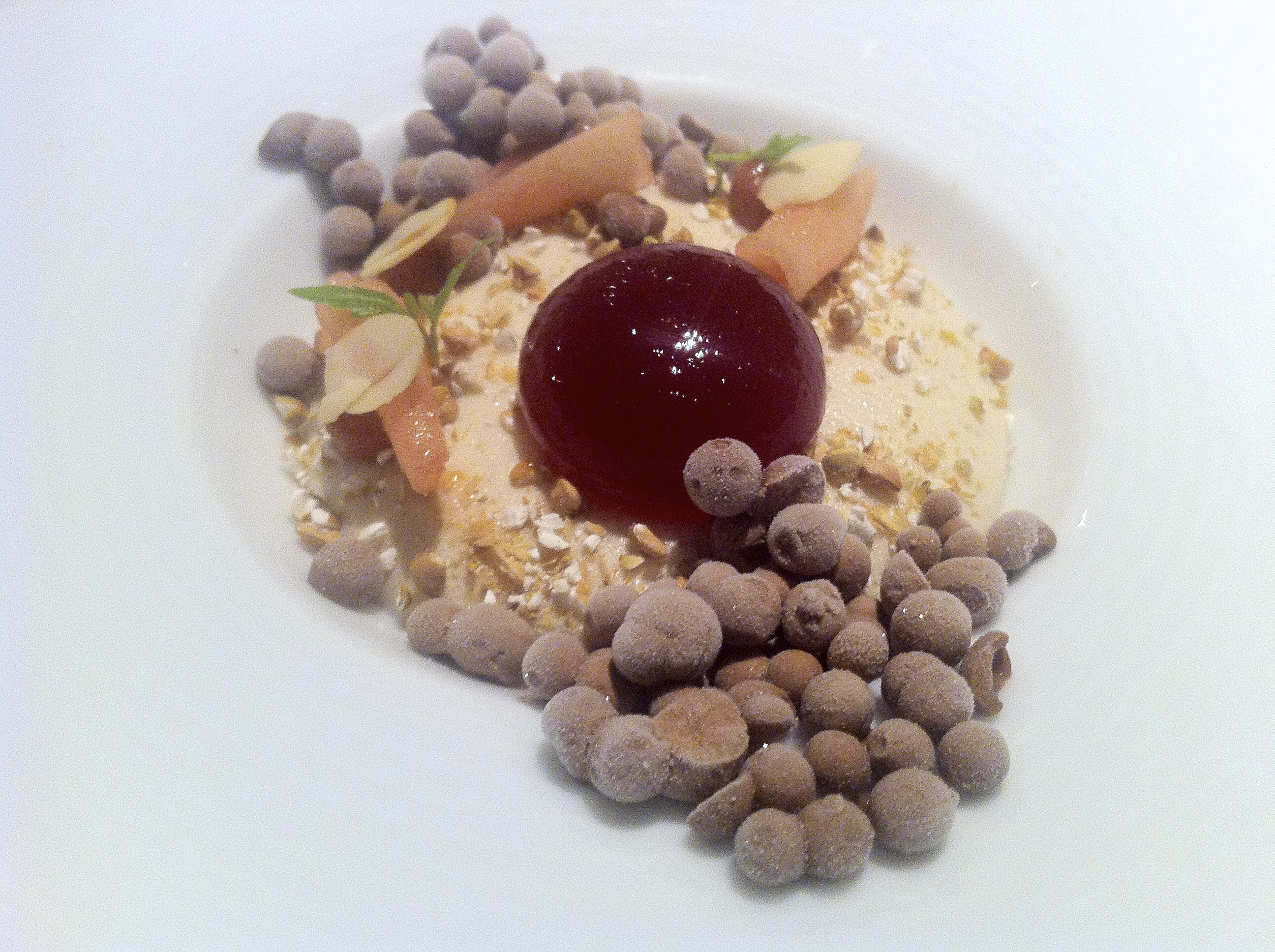This course was wild. It was a dessert, but puncturing the sphere in the center brought out this salty liquid to mix with the panna cotta and chocolate. Jarring. This course was genius. It was unique and totally original. I wonder if they simply put “2012” after the name of the course instead of ingredients to reflect this. I would love to try and make it at home.Then came the sweets.