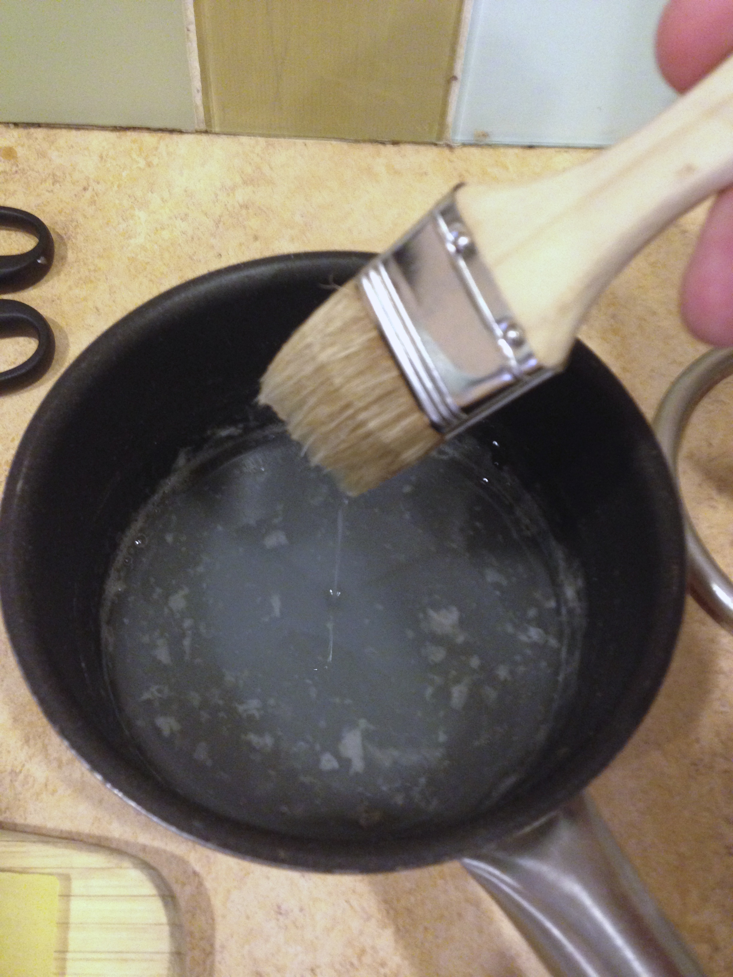 Next up was boiling some water with pectin to get it fully hydrated and get it ready to get brushed on the fruit.